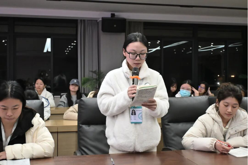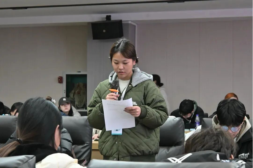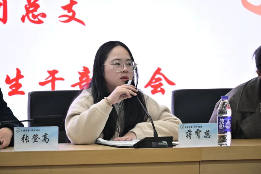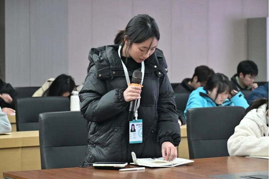 最后,学院党总支副书记蒋霄蕊老师发言。蒋老师聚焦工作规范与学风建设两大核心要求各部门梳理现存问题、明确未来计划,压实工作责任;强调学生干部需发挥先锋带头作用,以校纪校规为准则,在班级、寝室中树立正向影响力,将成绩、自律表现纳入考核范畴;探索工作创新路径,推动活动与专业结合、丰富第二课堂形式;着力强化团队凝聚力,倡导部门间沟通协作;明确会议务实导向,杜绝形式主义,理顺工作流程;严把学生干部队伍入口关。