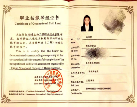本专业校内可考取医药商品购销员职业资格证书,工作满1年可以考取初级药师证,工作满4年可考取执业药师证,职业晋升路径清晰。